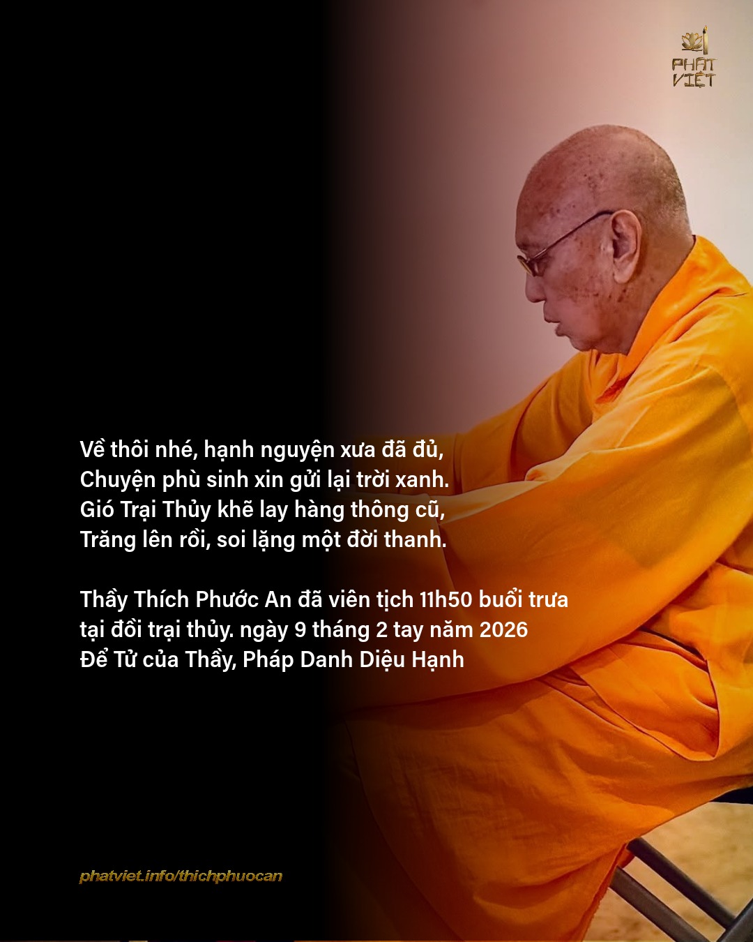 Bài Viết Cuối Cùng của Ôn Phước An Người đi trong mây trắng Bừng sáng ánh đạo vàng Con xin Vĩnh Biệt Người Nam Mô Tiếp Dẫn Đạo Sư A Di Đà Phật 11g50p ngày […]