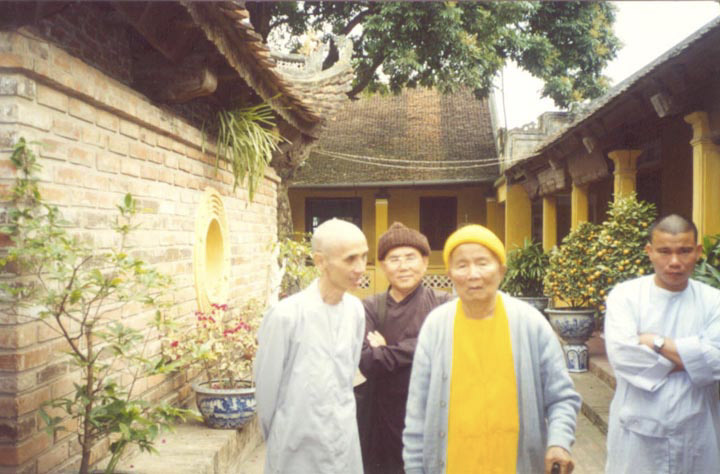 TT Tuệ Sỹ (trái) hầu thăm Hòa Thượng Huyền Quang tại Chùa Kim Liên, Hà Nội, tháng 3/2003. Ảnh tác giả Lôi Am cung cấp.