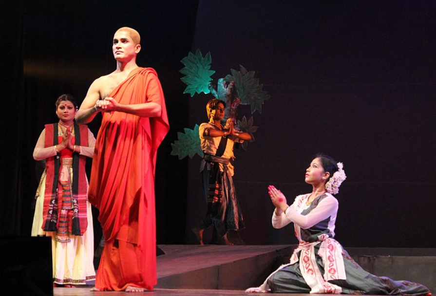 Trang phục của cô là váy xanh lá cây, biểu tượng thiên nhiên, trong khi trang phục mẹ cô là màu đỏ và đen, biểu tượng huyền thuật, và ngài Anan dĩ nhiên trang phục vàng, màu biểu tượng kham nhẫn của nhà sư. Các vũ công múa hát theo từng diễn biến kịch, hiển lộ qua nét mặt, qua các cử động tay và chân.